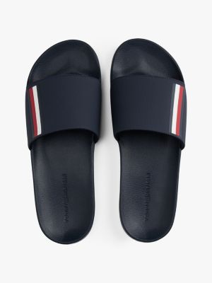 Ces claquettes se distinguent par leur bride à motif losanges texturé et leurs détails emblématiques coulorés.
