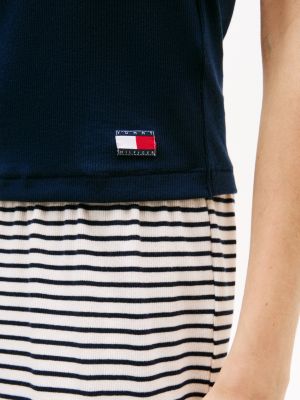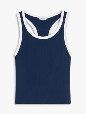 Donnez un coup de frais à vos tenues d'intérieur avec ce débardeur en coton mélangé extensible. Il présente une coupe à dos nageur et un écusson emblématique sur l'ourlet.