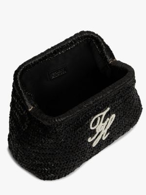 Pochette en raphia à logo texturé
