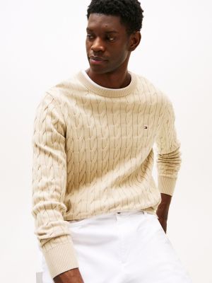 Ce pull facile à assortir en pur coton peigné mise sur un charme intemporel. Il présente une maille torsadée traditionnelle et un drapeau brodé.