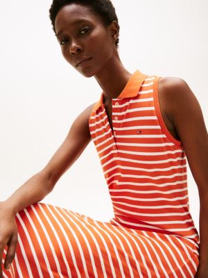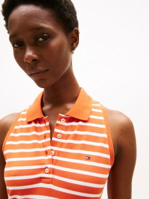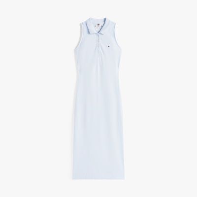 Cette robe polo sans manches rehaussée d'un petit détail emblématique adopte une coupe moulante pour créer une silhouette sportive et élégante.