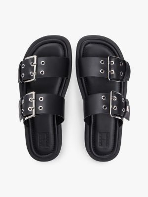 Avec leur semelle épaisse crantée et leurs brides à boucle décorées de détails métalliques, ces sandales modernes s'inspirent du style motard.