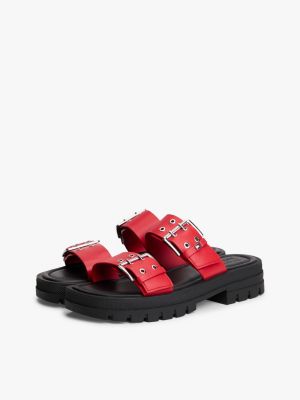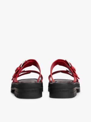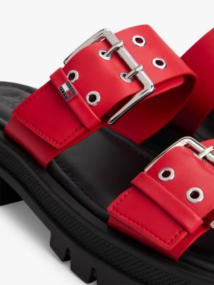Avec leur semelle épaisse crantée et leurs brides à boucle décorées de détails métalliques, ces sandales modernes s'inspirent du style motard.