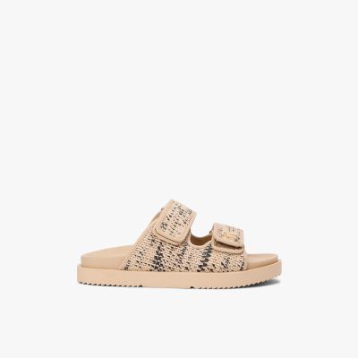 Sandales double bride en raphia à monogramme