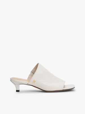 Mules en cuir à talon carré et monogramme TH