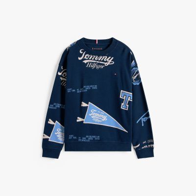 Ce sweat en coton mélangé est orné de logos et de motifs universitaires. Il revisite le style sportif classique de façon ludique.